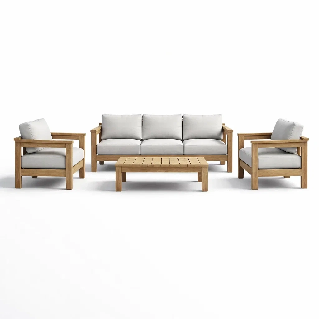 Matériau : Structure en teck, coussins en tissu polyester résistant à l'eau.
